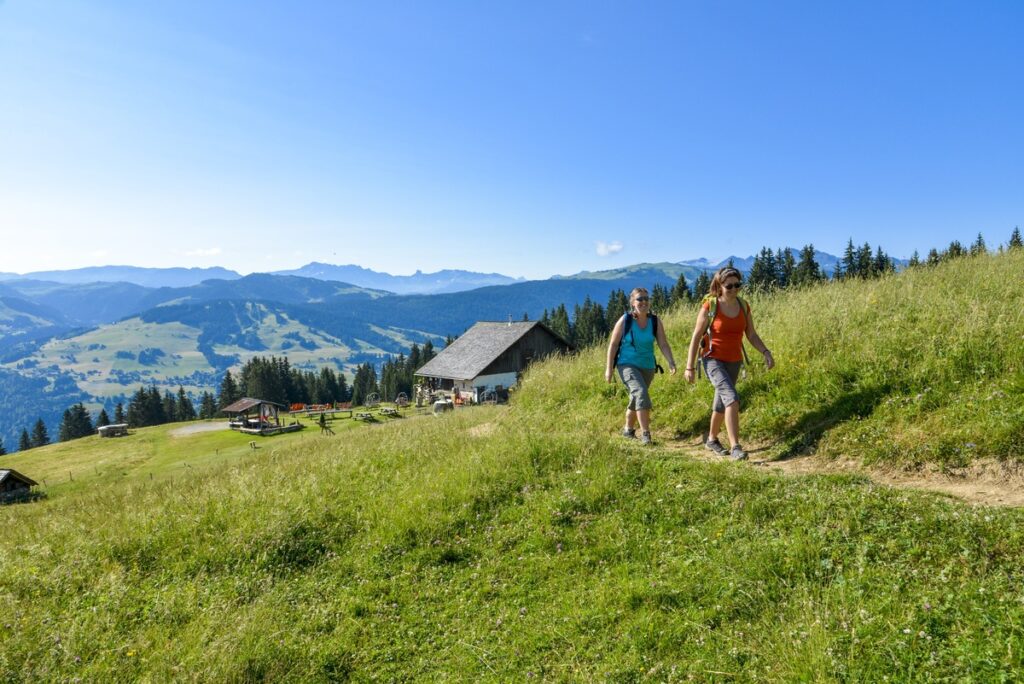 Cette boucle d’environ 4h vous mènera au Col du Joly, offrant des vues panoramiques sur les sommets environnants. Le sentier commence par une montée progressive à travers les forêts, puis continue le long des crêtes avec des paysages variés. Vous traverserez des alpages et des prairies fleuries, avec la possibilité d’apercevoir des bouquetins. Au col, vous serez récompensé par une vue imprenable sur les montagnes et les vallées.