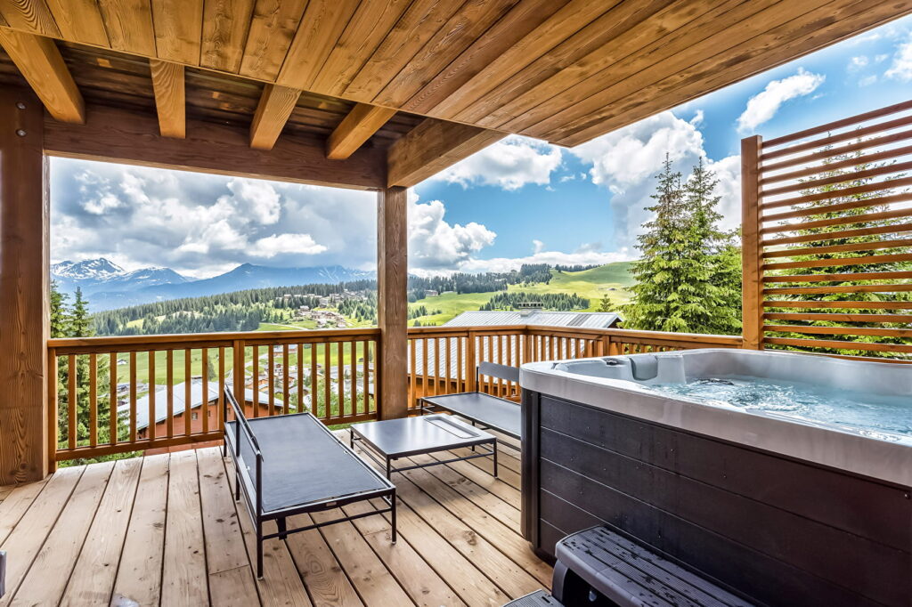 Une vue imprenable sur les sommets, que l’on savoure depuis la terrasse ou le salon grâce aux grandes baies vitrées