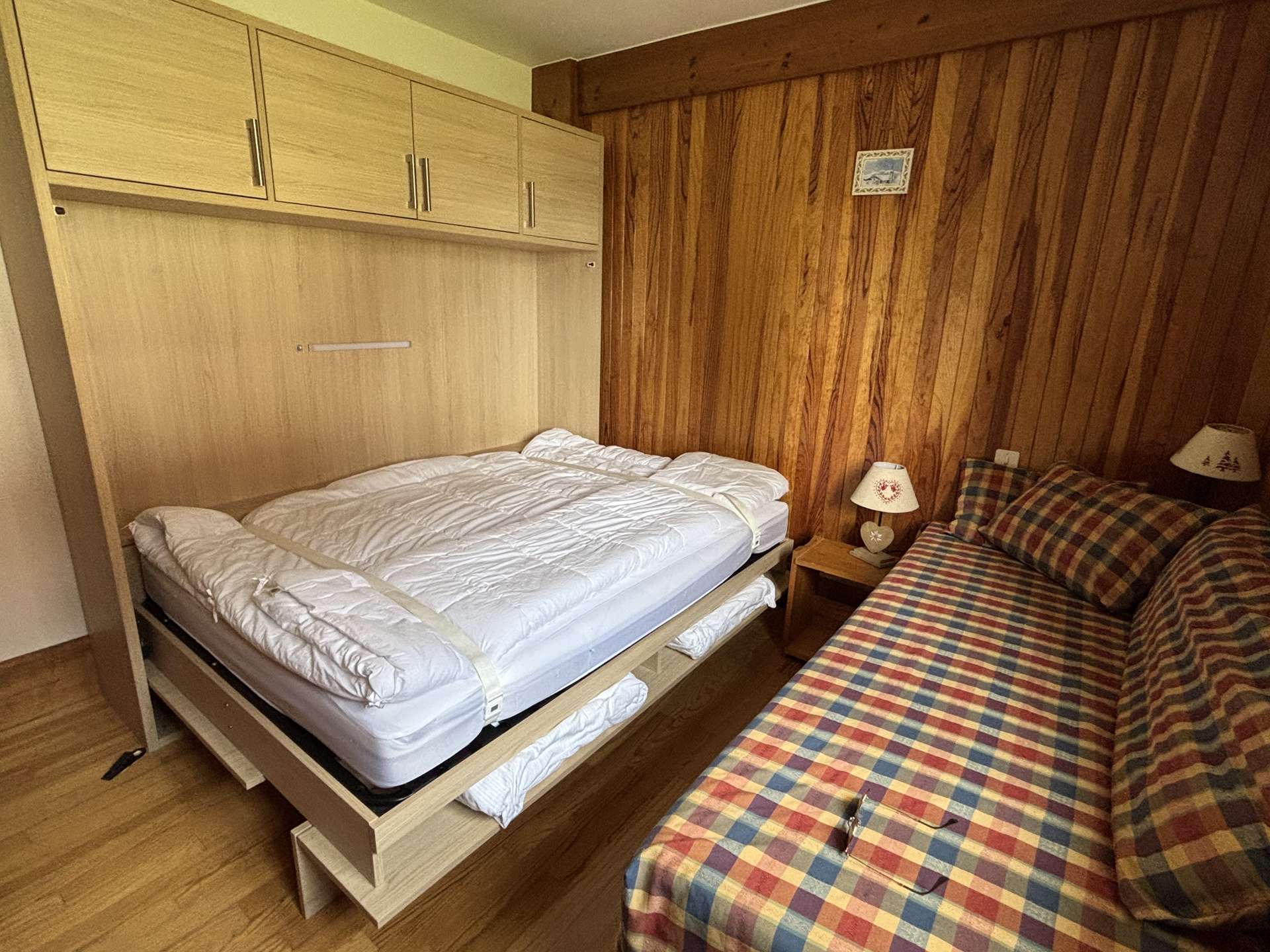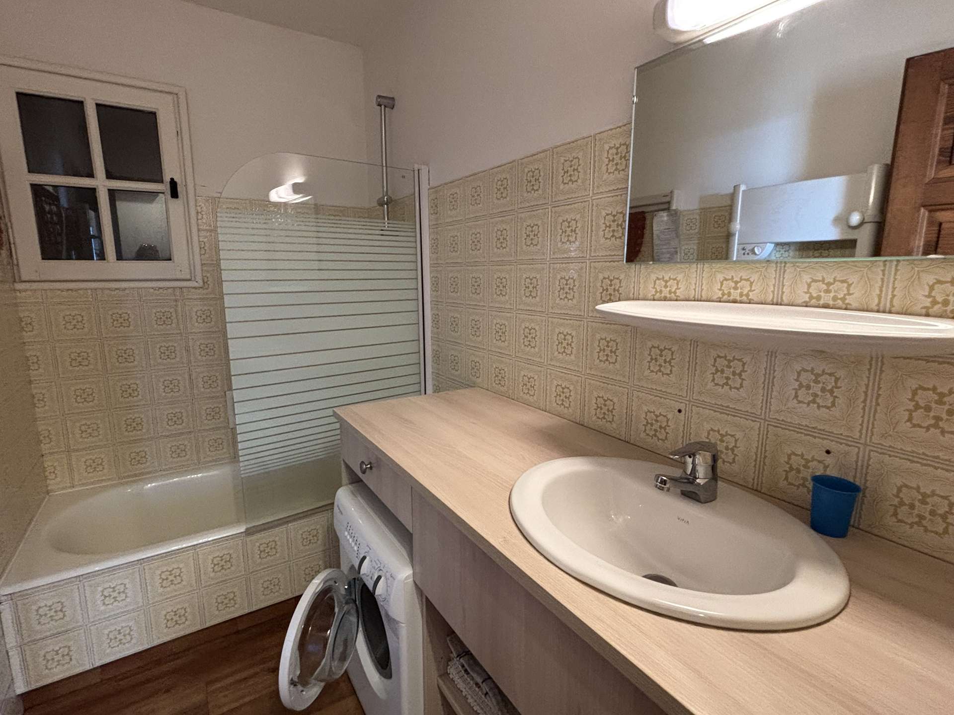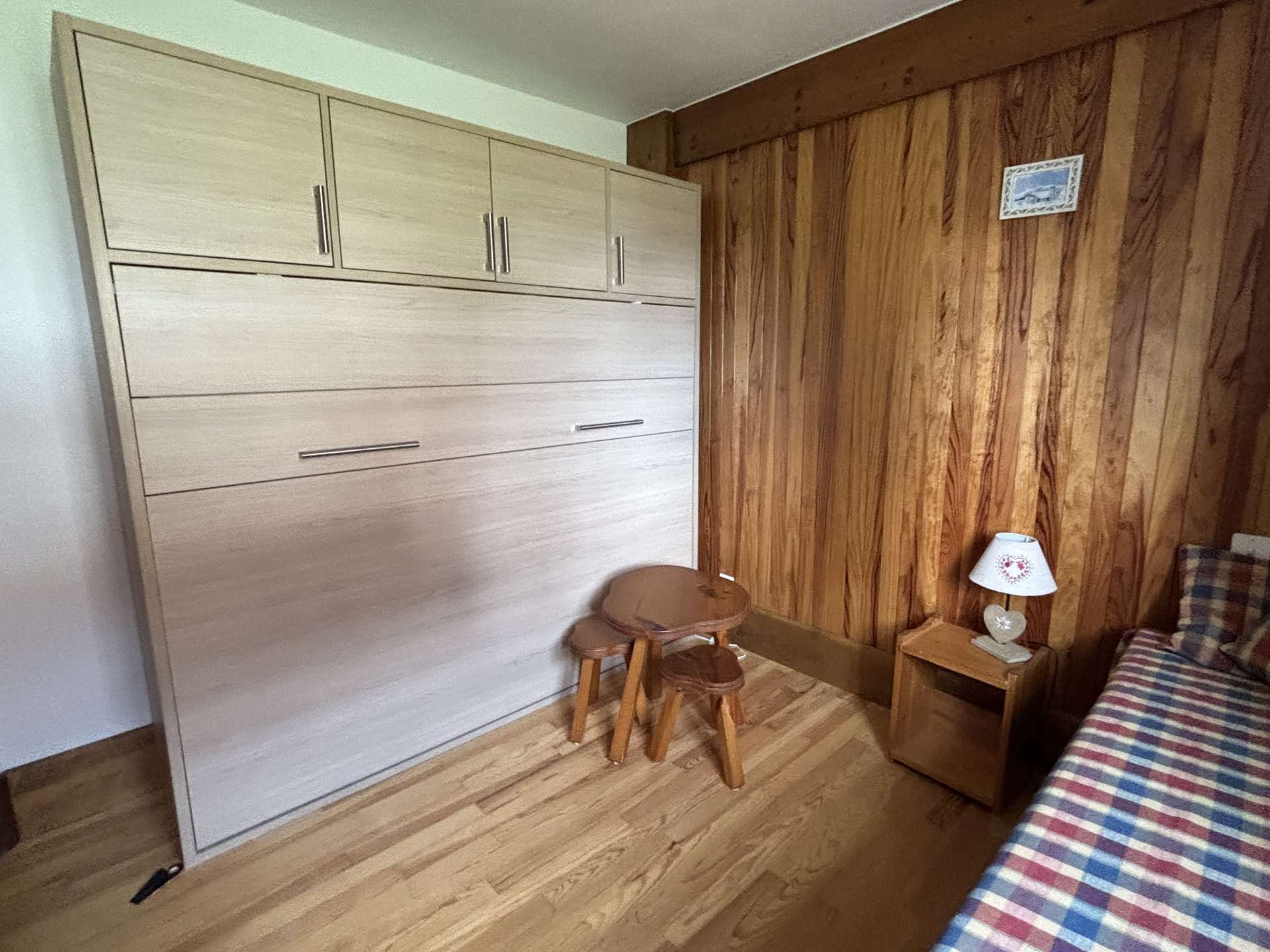 L'appartement se compose d'un séjour avec un lit escamotable 140 avec canapé, d' une kitchenette équipée donnant sur une terrasse, d'une chambre pouvant être utilisée avec soit la banquette avec lit tiroir (2 x 80) soit avec le lit escamotable en 140, d'une salle de bains et d'un WC séparé.